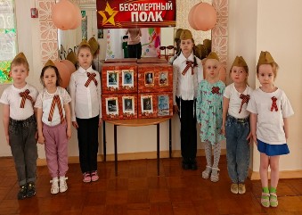 В детском саду прошли мероприятия, посвященные 80- летию Победы в ВОВ. Беседы о ВОВ, тематические занятия, флешмоб, акции "Георгиевская ленточка", "Окна Победы", "Бессмертный полк". Тимуровцы участвовали в Параде, дарили ветеранам открытки, изготовленные своими руками.