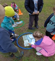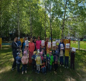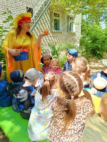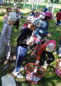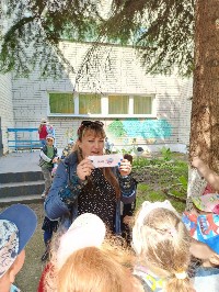 В рамках Международного дня эколога прошел экологический урок. Старшие дошкольники участвовали в квесте. Почтальон Печкин принес детям посылку с сюрпризом. Но не отдал ее, т.к. надо было выполнить различные задания эколят: собрать мусор в разные контейнеры, разгадать ребусы, загадки, кроссворд, собрать разрезные картинки, построить скворечники для птиц, построить из букв фразу "Берегите лес-наше богатство". В конце Печкин решил отдать посылку и вручил детям удостоверения эколят. Младшие дошкольники играли и веселились с солнышком, водили хоровод вокруг березки, отгадывали и называли фрукты и овощи.