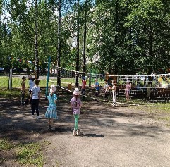 18 июня- Единый день летних видов спорта. Ребята соревновались в спортивных играх: пионерболе и бадминтоне, боулинге, в метании на дальность. Принималиучастие в эстафетах "Перенеси кегли", прыгали через скакалки, крутили обручи. Играли в подвижные игры "Рыбак и рыбки", "Не урони мяч".