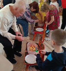 2 октября состоялось необычное мероприятие "Баттл шоу".Бабушка и дедушка соревновались с внуками и внучками.Кто кого перетанцует, перепоет, кто быстрее крупу переберет и клубочки смотает, кто больше рыбок наловит и загадок отгадает!Победила, конечно же, дружба!
